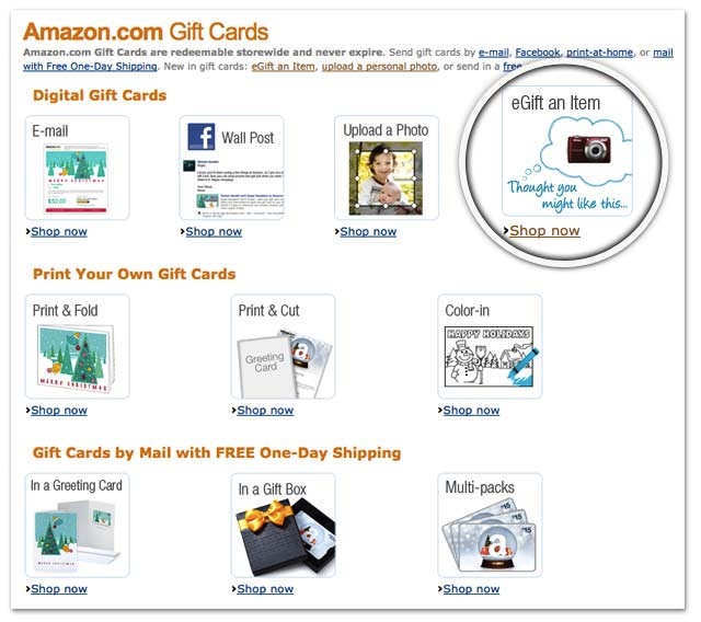 1.) Amazon has a GREAT way to gift ANY denomination of money in the form of a e-Gift card AND recommend what item you think they would enjoy! Visit http://amazon.com and click “Gift Cards” at the Top of the Page.